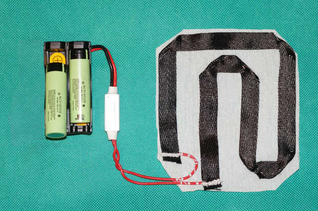 kit diy ropa climatizadaEl patrón de un chaleco de fábrica.6 metros decinta flex de la calefacción del carbón (www.carbonheater.us) colocado en la parte posterior y ambos lados. Por el tacto el carbono es un poco como un flojo Tejido de seda. Es muy