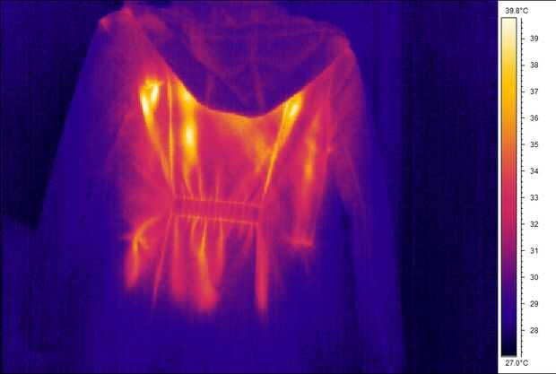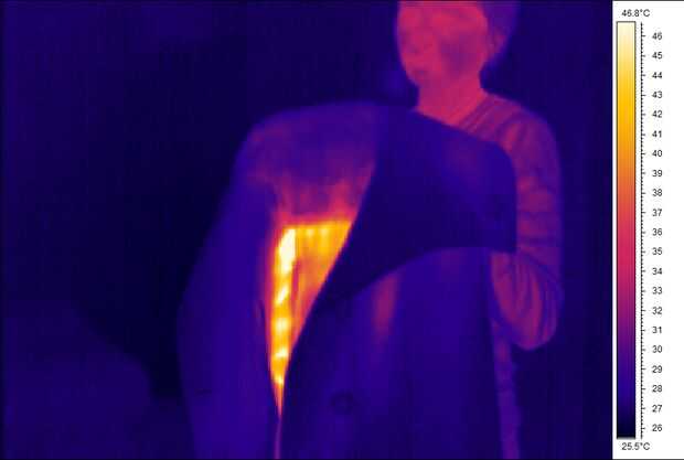 Cada panel puede utilizarse independientemente con cualquier ropa. En la superficie interna de las chaquetas convencionales cosí 4 pedazos de Velcro. Ahora puedo en cualquier momento fijar el panel de calefacción en una chaqueta y hacerla climatizada.