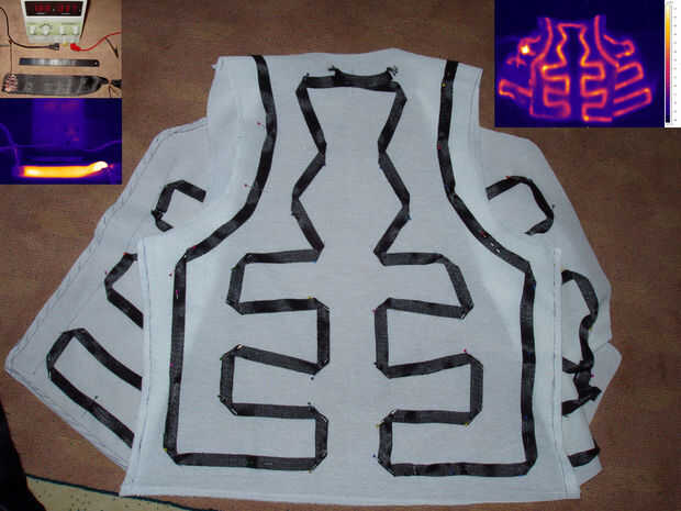 kit de bricolaje ropa climatizadaCompré una cinta flex de la calefacción del carbón (www.carbonheater.us) y había cosido en un ordinario aislamiento guantes del paño grueso y suave.Para cada guante usé 150 cm de carbono. Funciona con 12 que v. corrie