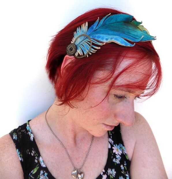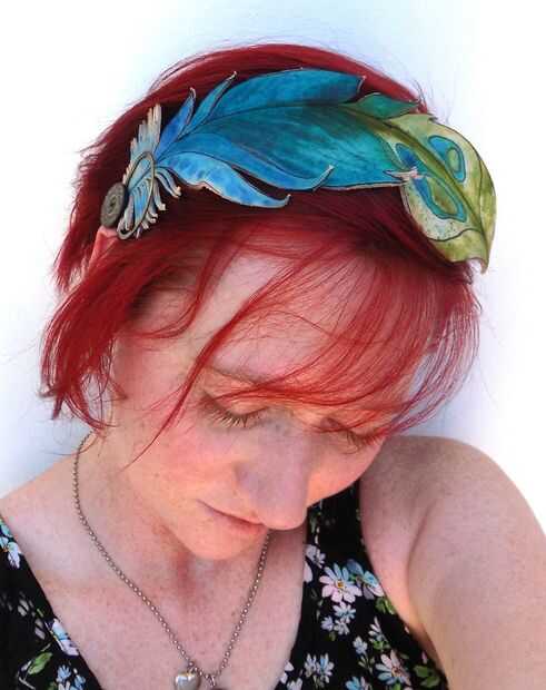 Retener el pelo en estilo y su creatividad el brillo con una cinta de cuero pintado de mano. Mojando la piel con alcohol y con tintas de alcohol, puede crear efectos de acuarela y luego esculpir para adaptarse a su estilo.