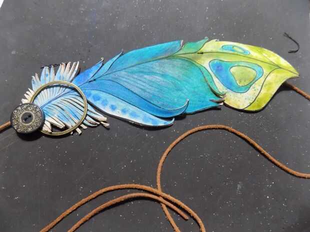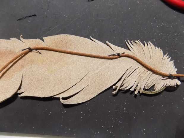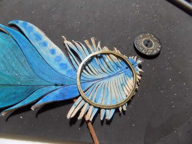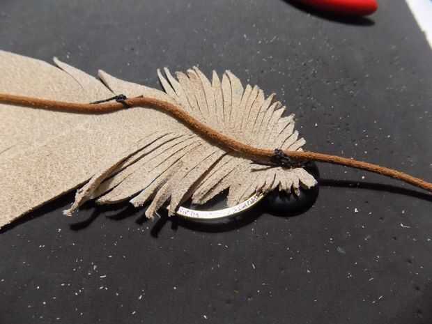 Colocar todos los accesorios que desea agregar en el extremo de la pluma para decidir donde quiere. Perforar dos agujeros más en el extremo de la piel en un lugar donde pueden mantener tanto la tira de cuero en la parte posterior y los accesorios en la parte delantera.