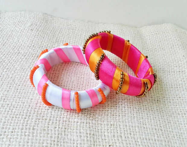 Se ha vuelto realmente difícil para mí que 'hacer nada'! En cuanto vi estos brazaletes de madera vieja en mi caja de joyería (para quién sabe cuánto tiempo!) Tenía que rescatarlos. Envolviéndolos con unas cintas de raso y agregar algunas perlas parecían perfectos.