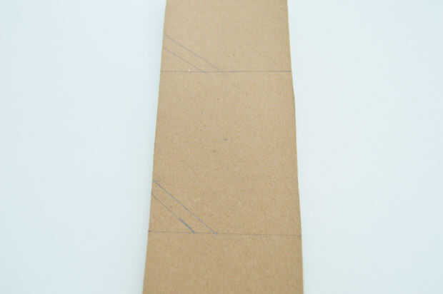 Dividir los paneles longitudinalmente igualmente (por el tiempo mencionado, se trata de 5 divisiones) ahora marcar las aberturas para las clavijas ir. Para hacer esto, marque el centro de cada división y dibuje dos líneas diagonales de 0,75 pulgadas (aproximadamente 45 grados) tocando los bordes. (como se muestra)