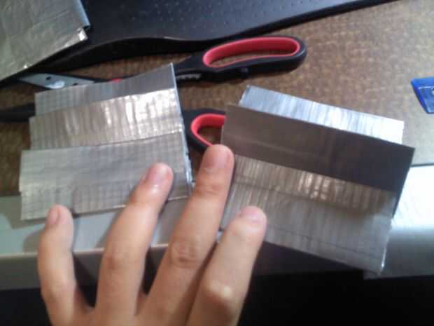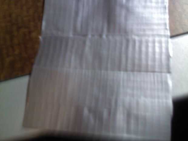 Separados en dos grupos, 2 de los pequeños y 1 grande, éstos se convertirán los bolsillos de la tarjeta. Tome un pedazo pequeño y colóquelo en un borde de la cinta con una tira de 3.5" y la. La vuelta hacia fuera y poner otra tira de 3.5" en el otro lado.
