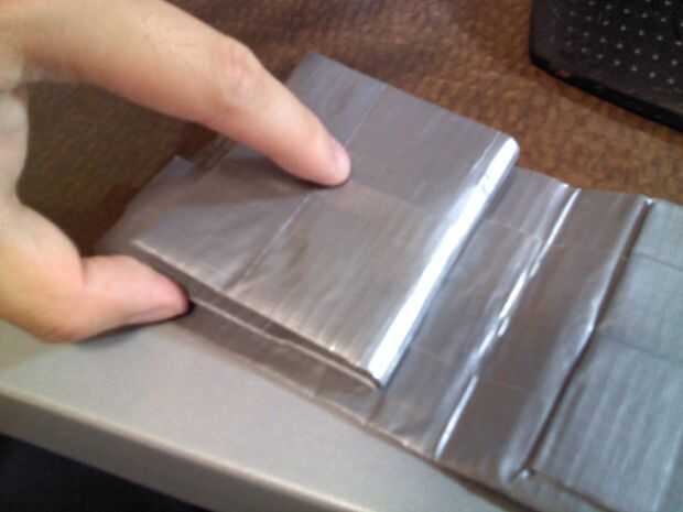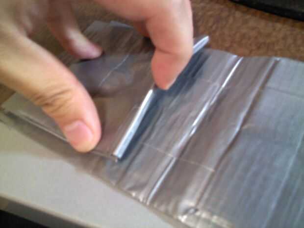 Esto hace que los lados de los bolsillos de la tarjeta a ser bloqueado por la cinta. Tomar el cuchillo y cortar a lo largo del bolsillo todo liberarlo, pero no corta demasiado o sus bolsillos será débiles. A continuación tome dos 3.5" pedazos de cinta y"cover"sobre las tapas de los bolsillos de tarjetas dos de fondo. Haciendo esto es hace más fuertes, pero también cubre las roquillas que podrían han filtrado hacia fuera desde el corte de cuchillo.