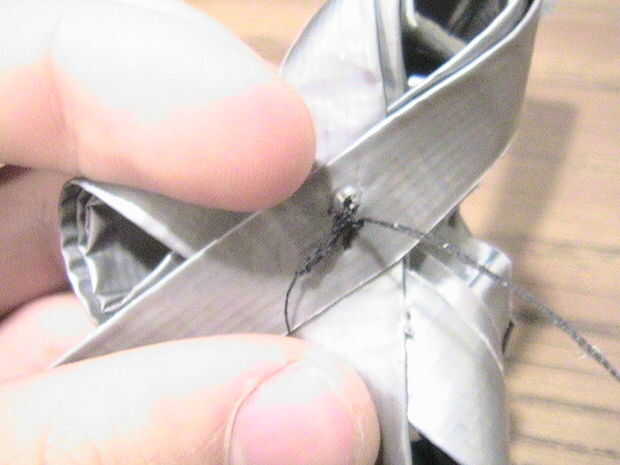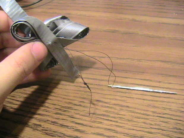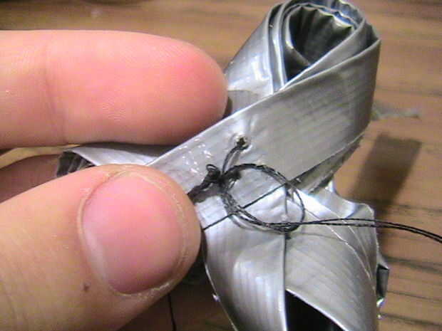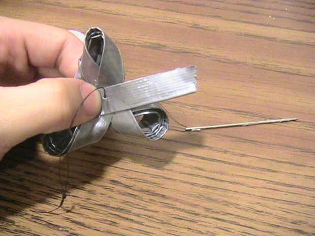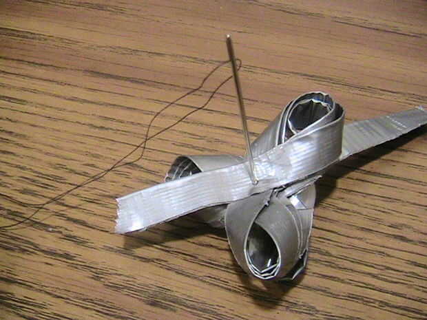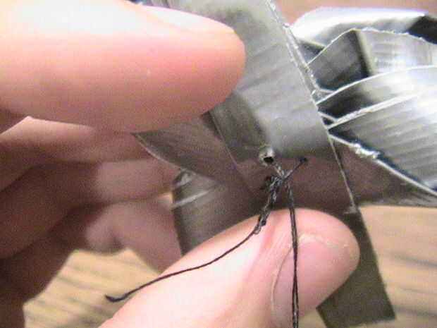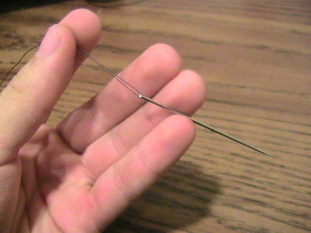 Una vez que llegas a través de, vuelta y empuje hacia atrás a través de la otra manera. Si desea mantener ambos orificios cercanos unos de otros, de espacio hacia fuera un pedacito para asegurarse de que el hilo no volver el primer camino. Una vez a través, atar los dos extremos juntos.