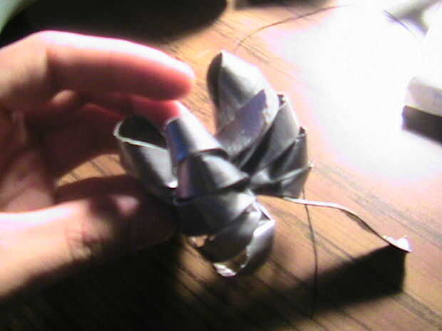 ¡¡¡Que te diviertas!!!Paso 1: corte...Corte un 9,5 en la tira de la cinta. Pliegan por lo que es una tira de 4,5 en cara, doble de cinta del conducto.Paso 2: pellizcos... Recoger la cinta en el medio.Paso 3: grabar...Use un pequeño trozo de cinta y c