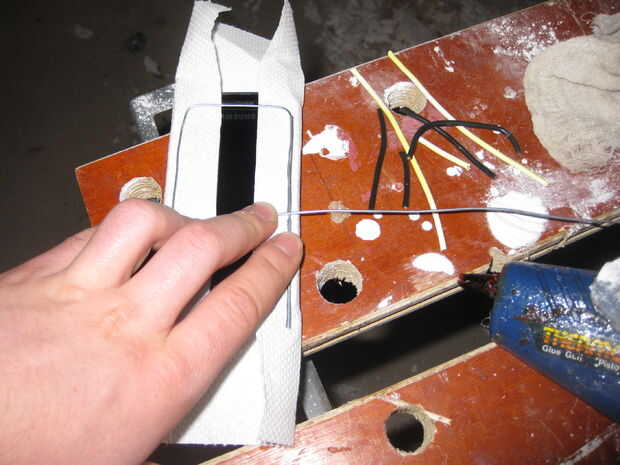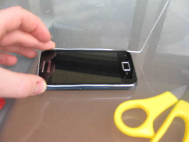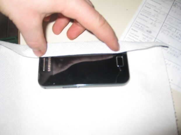 Materiales:TijerasTeléfonoCinta para ductos (cualquier Color)VelcroPaso 1: Envolver el teléfono Decide si quiere que su teléfono entrará en su caso verticalmente. Si usted desea hacer su caso verticalmente, deje 1/8 del teléfono sobresale de la part