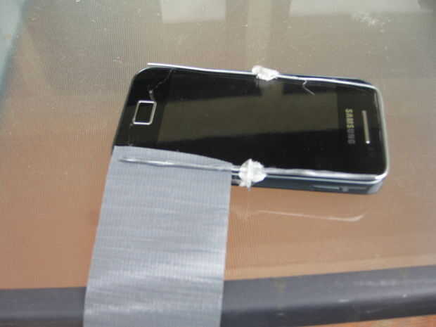 Materiales:TijerasTeléfonoCinta para ductos (cualquier Color)VelcroPaso 1: Envolver el teléfono Decide si quiere que su teléfono entrará en su caso verticalmente. Si usted desea hacer su caso verticalmente, deje 1/8 del teléfono sobresale de la part