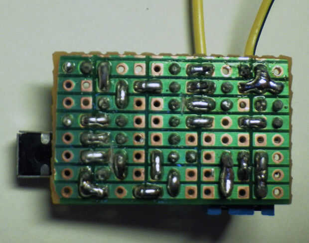 Las fotos muestran la colocación de los componentes y los necesarios puentes en la parte trasera de la soldadura. Actualmente estoy pensando en hacer un diseño de PCB para el mando, pero por ahora esto es todo lo que tengo.
