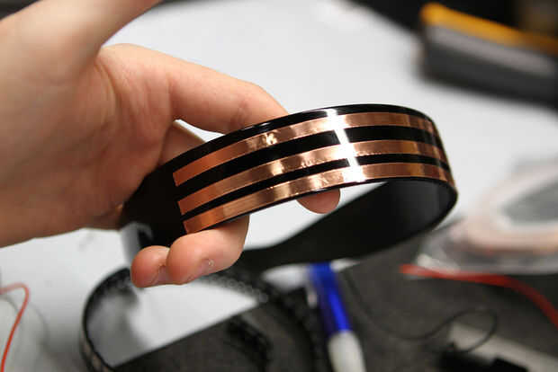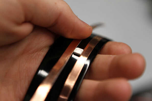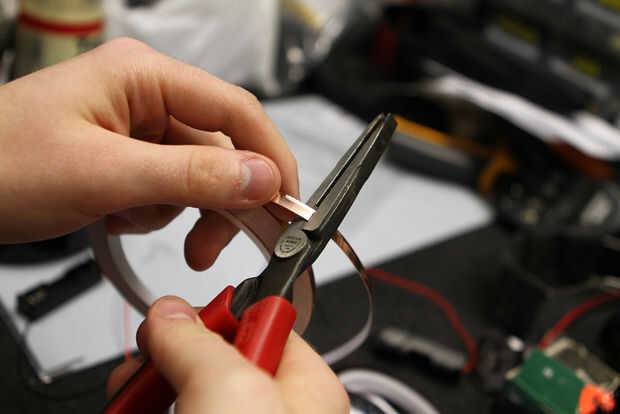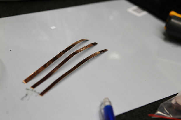 Así que cortar 3 trozos de su coppertape que coinciden en longitud.