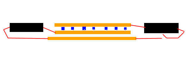 2 caminos para los LEDs y una ruta para la electricidad para duplicar el voltaje y lazo de vuelta.