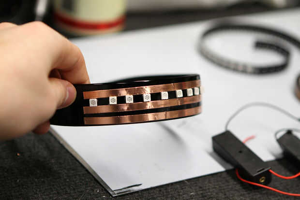 Poner los LEDs entre las tiras de coppertape. NO EN ELLOS.