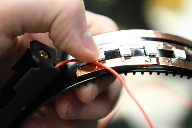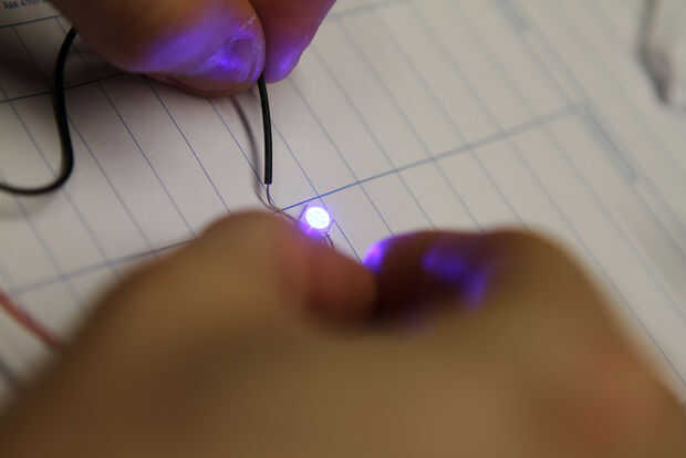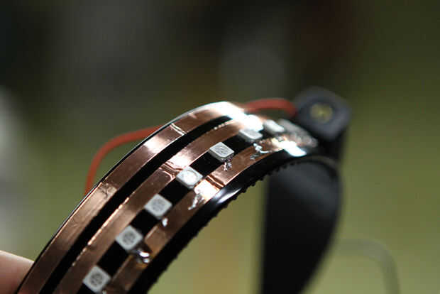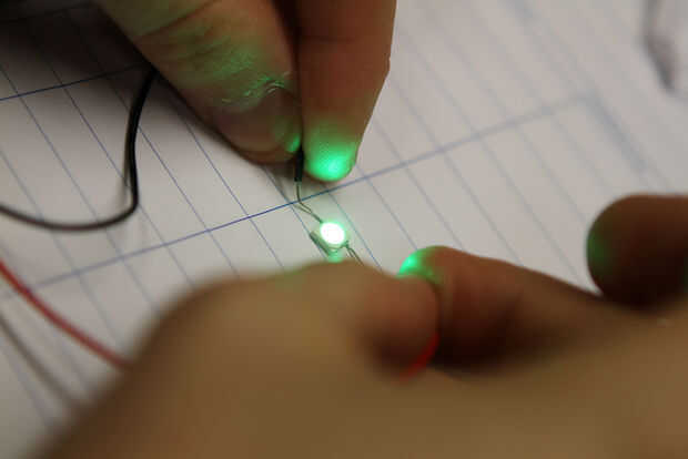 Cuando se sueldan todos los LED en su lugar, la soldadura la batterywires a la coppertape también.