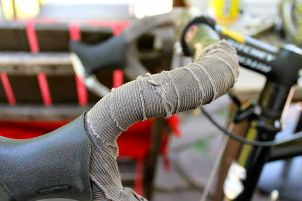 siempre corté las piernas de viejos, desgastadas jeans y pantalones de pana en el verano por lo que puedo ahorrar en pantalones cortos. Me sentía derrochadora a tirar a la tela sobrante, así que decidí hacer algo con él. Yo cumplire barra de cinta para mi bicicleta de carretera, así que cortar a la tela en tiras y coser juntos. Usted podría hacer esto con casi cualquier tela que no sea demasiado gruesa (camisetas y franelas funcionaría bastante bien), pero te voy a mostrar como hacerlo con un par de jeans.