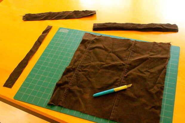 2. cortar a la tela en tiras de aproximadamente 1-2 pulgadas de ancho. La longitud no importa mucho. Mina eran alrededor de 15-16" long. Usted debe terminar con las tiras de 16-18, que deben envolver manillar completo de 2-3.