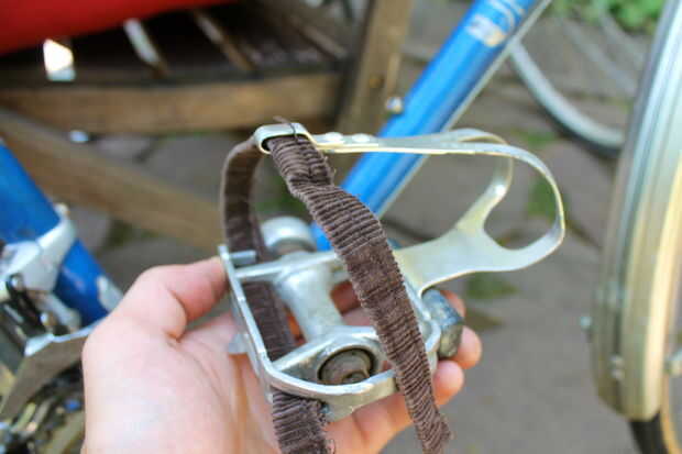 2. Si ha guardado el dobladillo de antes, usted puede usar como una correa del dedo del pie para sus jaulas del pedal. Sólo tire de ella a través de recortar cuando sea necesario y ate los extremos juntos.