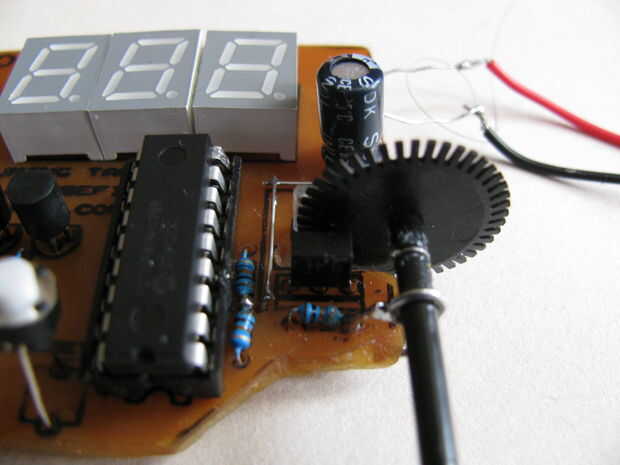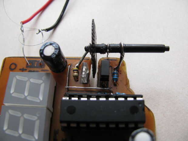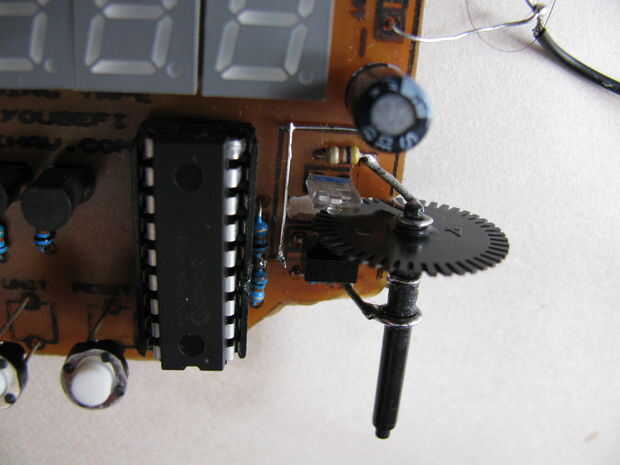 De la soldadura de dos piernas en el tablero para mantener la rueda del codificador de eje, encender la cinta de medir y ajustar la posición de la rueda dentada. Girar la rueda debe causa incremento en mostrar número y girando hacia atrás debe causar disminución en la exhibición del número.