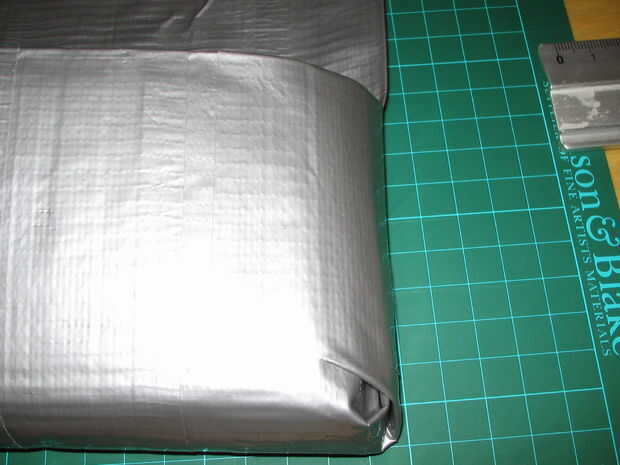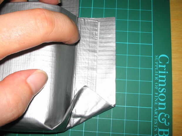 Corte un pedazo de pato cinta la longitud de la sección exterior doblado en. Ahora, repita el paso que acabo de hacer y pegar abajo de la pieza exterior con la cinta pato sólo corte. Debería verse como la tercera imagen.
