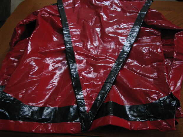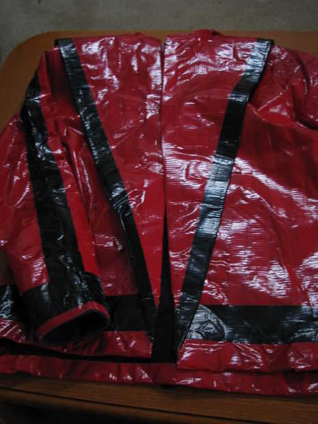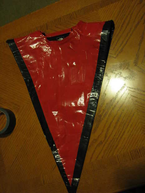 he comprado un par de zapatos rojos de buena voluntad como parte del disfraz. Con la marca pato cinta que se vende en tiendas de artesanía, pensé en hacer mi único par de zapatos.  Cubrir la muestra con cinta pato y entonces tendrá zapatos cinta pato