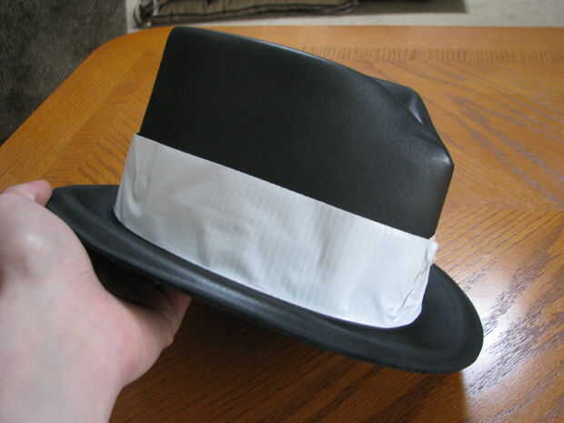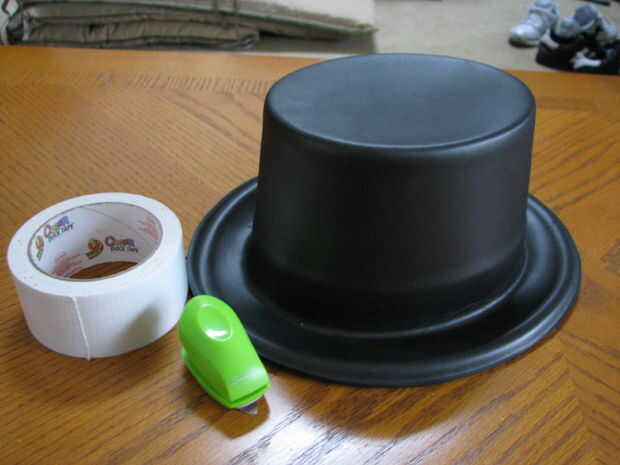 Pellizque la parte delantera del sombrero desde el interior y grapas en su lugar. A continuación coloque una tira de cinta de pato blanco alrededor del borde.