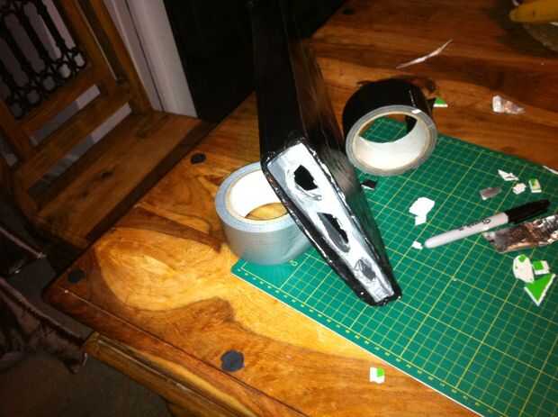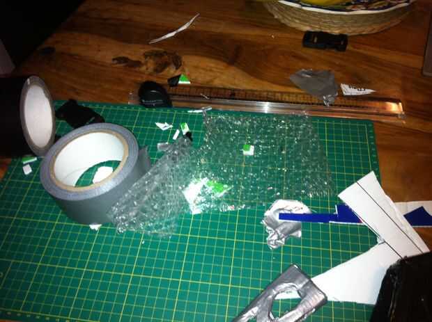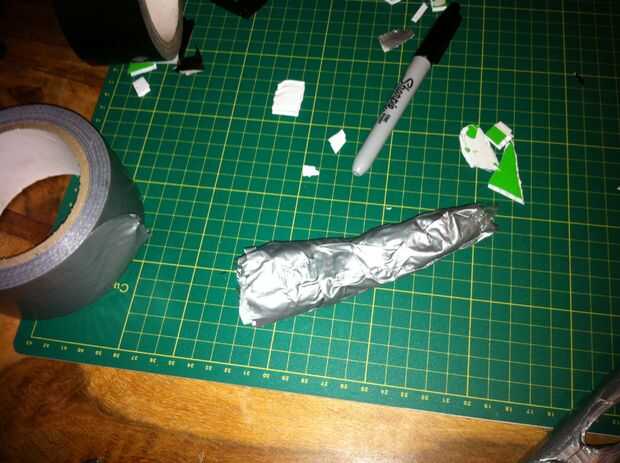 Para detener las brocas afi ladas puntiagudos escapan por la parte inferior de la aljaba tomé algún abrigo de burbuja y cubiertos en lo que más que la cinta del conducto. Esto fue pegado en la parte inferior de la aljaba para proporcionar cierta protección contra penetración pila.