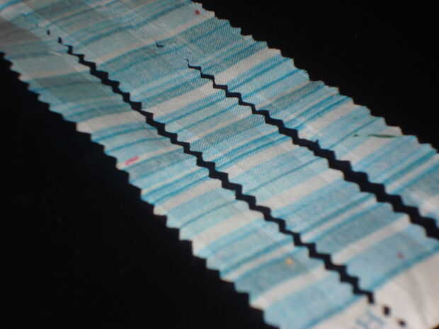 Recortar el papel o la tela más ancha que la cinta, por lo que puede ser ajustado después de aplica la cinta.
