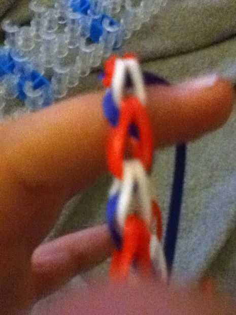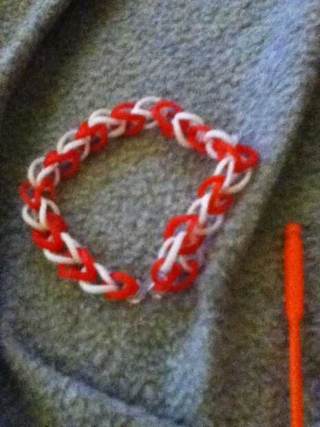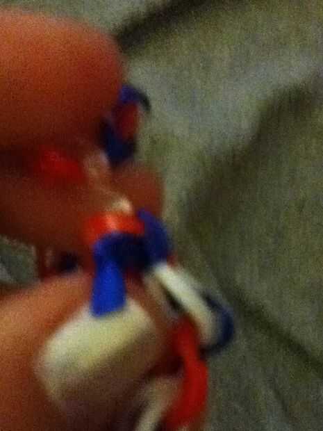 Para esto tienes que llevar la pulsera de telar. Tomar la cinta y enróllelo alrededor de las bandas de tejer adentro y hacia fuera. Cuando su acabado hace un doble nudo donde usted comenzó y terminó.