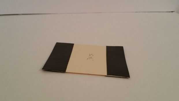 -Piezas cuerpo: Cortar dos tiras de la longitud de la pieza de cuerpo (3 1/2") de su color de la cinta de conducto principal. Estos serán envueltas alrededor de los bordes superior e inferior. Siguiente toma un pedazo de cinta adhesiva dos veces tan largo como la longitud y comienza en un extremo Envuelva la cinta completamente para ocultar la cartulina por ambos lados.