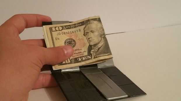 es una carpeta mágica, hecha de cinta del conducto. La billetera mágica se ha hecho antes, pero me decidí a hacer uno, baratísimo. Esto debe durar un tiempo y si es destruido, toma unos quince minutos y hacer otra.La historia detrás de él...Bien, est