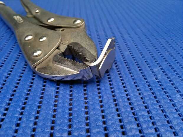 Utilice una de las herramientas mencionadas para agarrar la pieza de metal del imán del disco duro y lo doble del imán lentamente. (Utilice guantes y protección para los ojos como no estoy seguro si el imán podría romperse). Yo también envuelto el imán entero y Vice grip en un paño, en caso de que el imán hizo algo divertido. Debo añadir que he separado muchos imanes con este procedimiento y nunca no se ha roto. Pero prefiero estar seguro que lo sentimos...