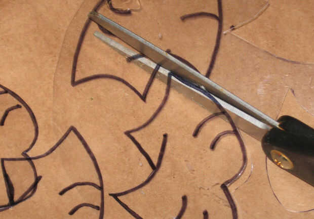 Traza el dibujo con un rotulador grande. Gire según sea necesario para hacer mejor uso de la pieza de plástico.