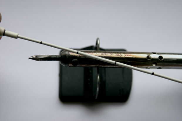 Mantenga el cable justo en la parte superior de la resistencia de la plancha caliente, el cable que está girando lentamente. No deje que el cable toque la plancha! Desea que el aire caliente ascendente de la plancha para hacer suave la superficie exterior del aislamiento del cable, pero no fundirlo. Generalmente 20 a 30 segundos debería bastar, pero tal vez quiera experimentar un poco en un suplemento poco de cable para determinar el tiempo óptimo.