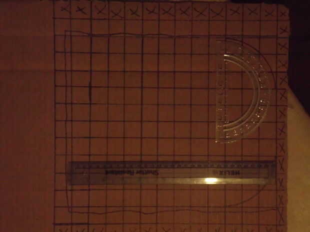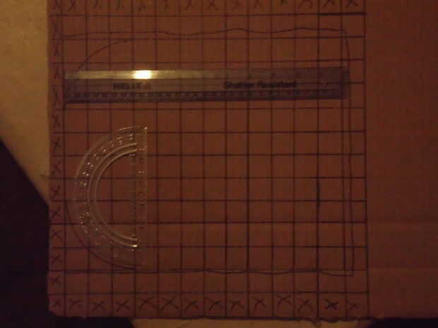 I cortar un rectángulo grande de mi caja y dibujó una cuadrícula de pulgada cuadrada sobre ella.  Dependiendo de qué tan grande quieres tu mochila, puede modificar su plantilla.