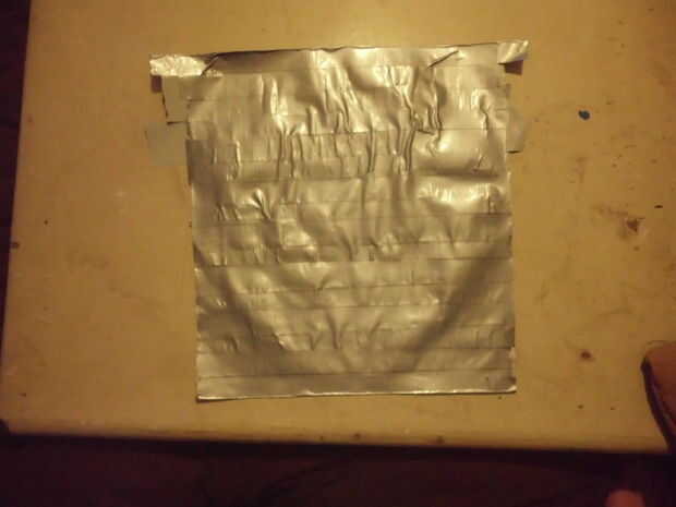 Cortar la cinta en tiras más grande que el ancho de la mochila.  Repediatly ponga la cinta juntos lado pegajoso a lado pegajoso después de un rato te va a crear algo parecido a la imagen.