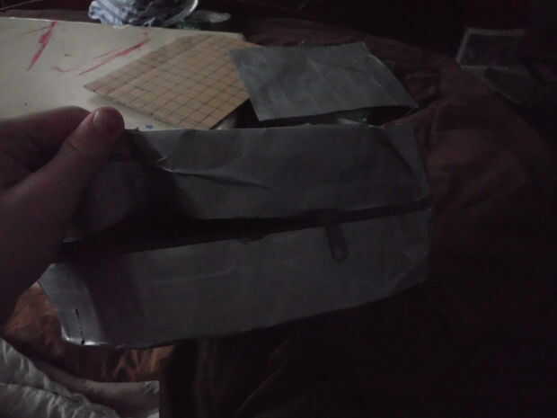 hice este bolso para mi esposa de caja de sus galletas favoritas. Es esencialmente un monedero de la cinta del conducto pero hace que la envoltura de plástico para una bolsa de mejor aspecto. Mi inspiración viene de una empresa que me gusta mucho www