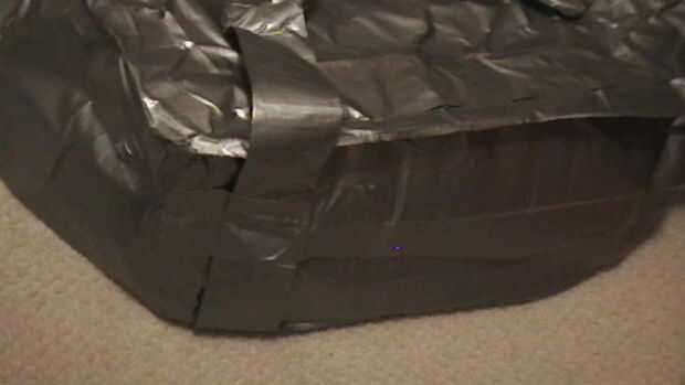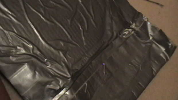 Para los lados, obtener una hoja que es tan gruesa como la bolsa por unas pulgadas menos que la altura es la bolsa (por lo que podría tener una cubierta para la bolsa). Primera tela pegarlo a los bordes izquierdos y derecho de la espalda. A continuación, pegarlo a la base. Usted tendrá que hacer esto dos veces.