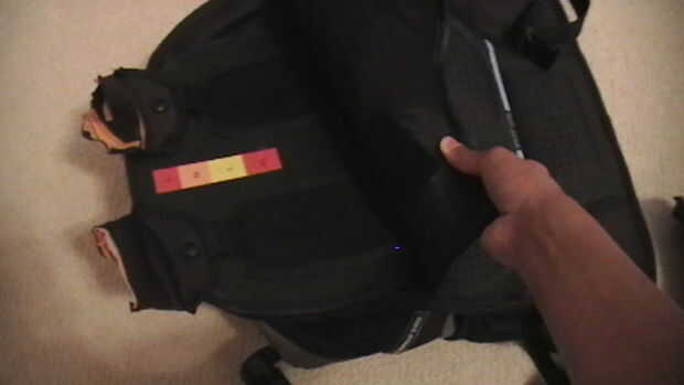 Vamos a empezar haciendo primero las correas de la mochila! Tomar tu mochila repuesto y corte las correas, así que usted conseguirá el relleno por debajo. Hacer esto dos veces para ambas bandas. Usted debe conseguir algunos poliestireno de él. Observe cómo se curvan, puesto que cuando se colocan las correas, tienes en la curva. Ahora que tienes las piezas de espuma de poliestireno a las correas, tapa cinta sobre ellos. Asegúrese de que es tan limpio como sea posible. Al cubrir con cinta adhesiva, trate de no obtener cualquier pliegues en la cinta. Ahora repita este paso en la otra correa de la mochila.