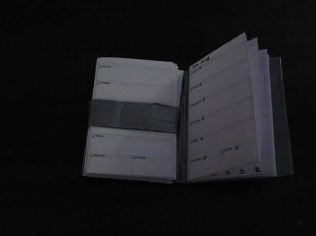 Puede Agregar una correa para la celebración de más PocketMods poniendo un pedazo de cinta adhesiva en la parte posterior de otro y poniendo en el lado izquierdo de su cubierta de cartera. La banda elástica en celebrará mientras cerrado.