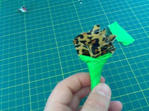 Lo siento no tengo imágenes paso a paso, pero puedo describir lo que hice.Mira los pasos para obtener más detalles.1. Tome una pluma de la tapa y cubrir con cinta adhesiva verde2. Tome un 5 x 5 en la Plaza Roja (o rosa de pétalos) y tomar las esquina