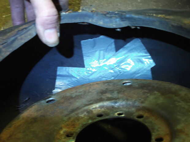 Presione 1 tira de cinta sobre el agujero.