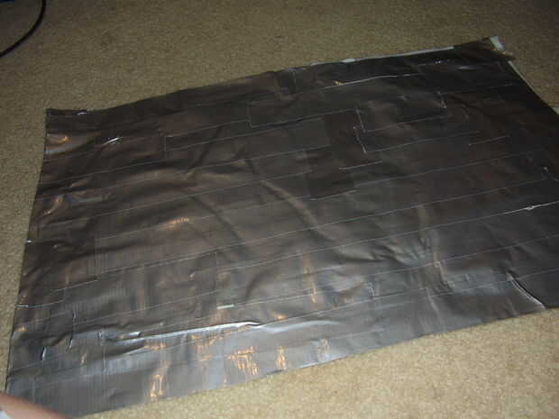 Primero lo que tienes que hacer es hacer hojas gigantes de cinta que se ajustan a una de sus camisas en ellos. Hacer una hoja poniendo al lado del palo de un pedazo de cinta adhesiva en el lado pegajoso de otro pedazo de cinta adhesiva. Hacer dos de estos.