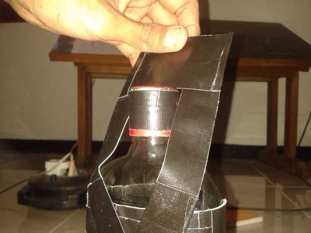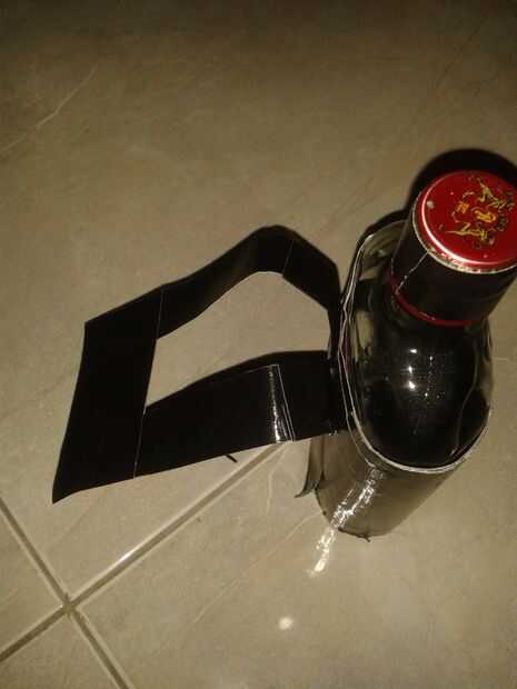 después de conducto grabado cada lado de la bolsa que necesita para hacer así que es el sostenedor de botella no pop accidentalmente.