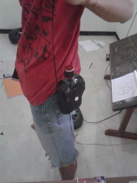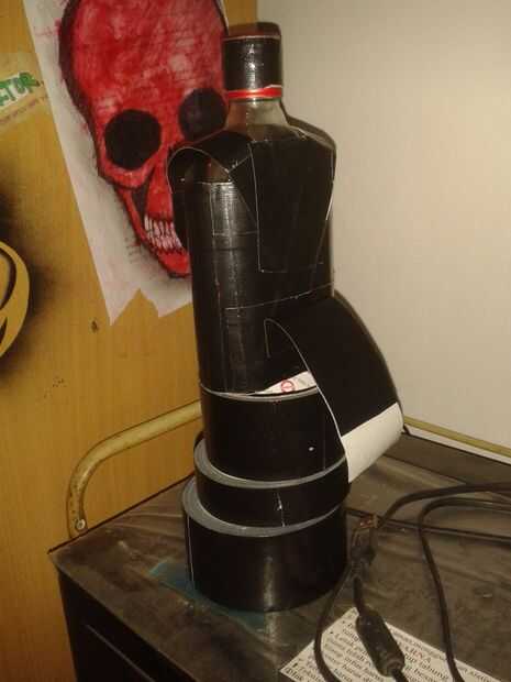 fortalecer la parte superior e inferior parte con cinta adhesiva. llevará a cabo la bolsa mientras la botella fuera de él.