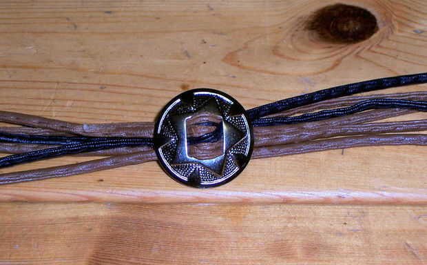 El primer trabajo se pase los cordones por el concho dejando unas cuantas pulgadas por un lado, luego de rosca bolas en los pares de largo para ayudar a mantenerlos en orden, ya que es bastante fácil a pista suelta de los filamentos, particularmente si está utilizando algunos de ellos.
