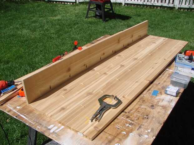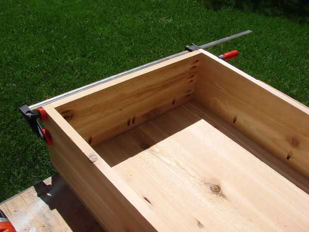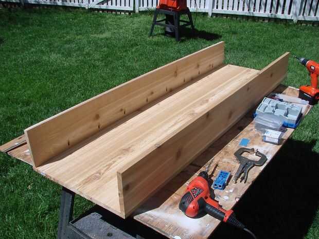 Las tablas de 8" no son exactamente 8" de ancho así que usar una cinta de medir para medir dentro de la distancia entre los tableros del 2 lado. Debe tener 2 despuntes de las original 8" las juntas que se pueden utilizar como las placas de extremo. Deben cortarse en la Sierra de mesa para que coincida con su medida interior. En mi caso, las juntas de extremo necesitan para cortar a 20".