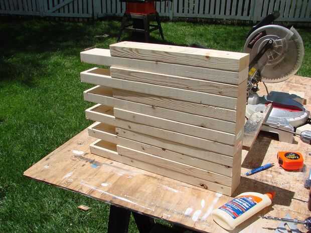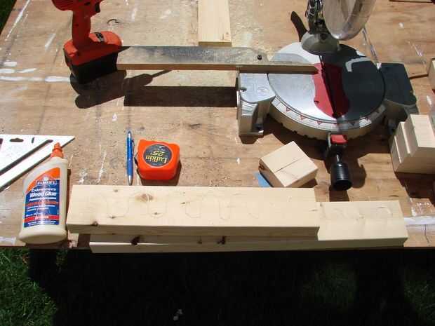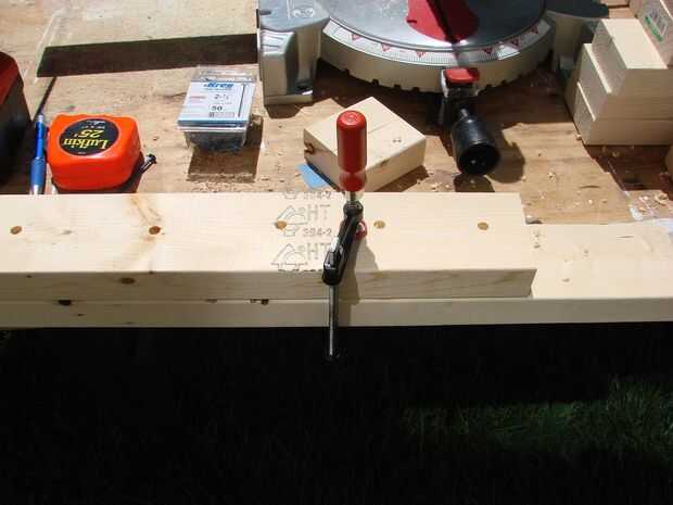 Ahora tome un 19" pieza 24-1/2" pieza y pegar con pegamento de madera. Sujetarlos juntos para evitar que se mueva y contador de agujerear los agujeros en el lado de 19". Utilizar los tornillos de todo tipo de clima de Kreg de 2-1/2" para atornillarlas juntas. Utilicé 4 tornillos por pata para el primer par de patas y luego cayó a 3. Creo que 3 es suficiente ya que las caras se pegan.