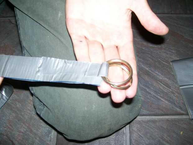 esto le dirá cómo hacer un cinturón de cintaPaso 1: Reunir los materiales Necesita tijeras, cinta de elección, dos anillas y una cinta métrica. También dos sillas para la cinta del conducto a través del estiramiento.Paso 2: Medir y estiramiento Medir