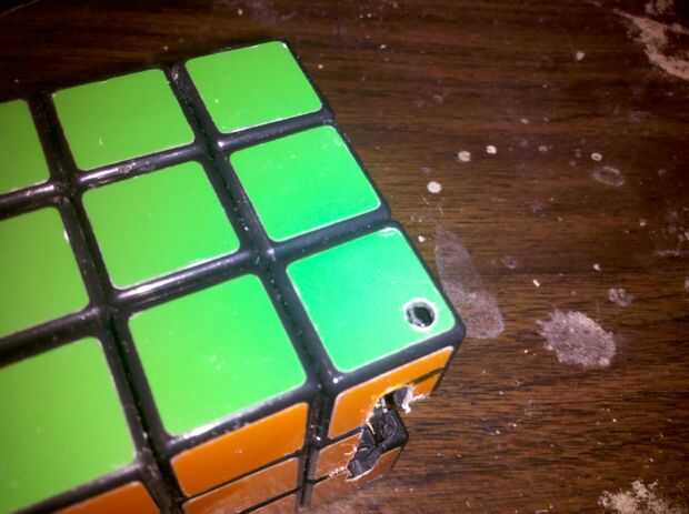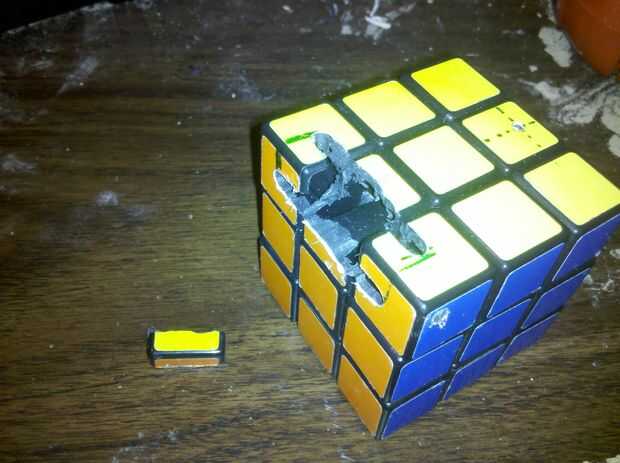 (el cubo del centro usted tendrá que cortar completamente pero no corta los cubos de la esquina como el cubo de centro o el cinturón no permanece atado bien)