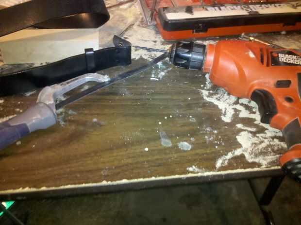 Tome el taladro y taladro en la esquina como cerca de la esquina como sea posible